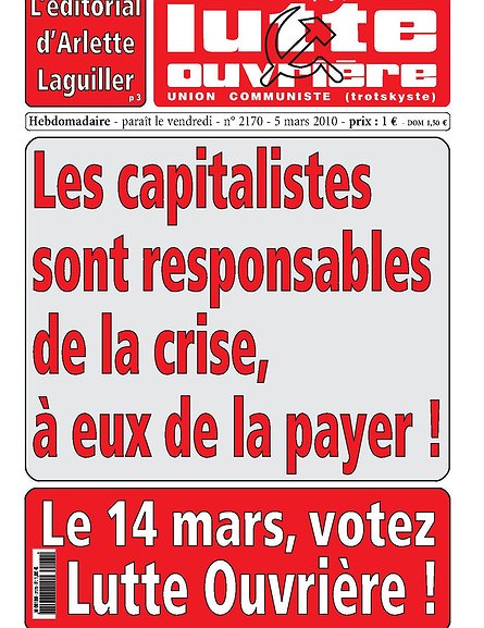 Votez Lutte Ouvrière ! Les capitalistes et les banquiers sont les seuls responsables de la crise. À eux de la payer, pas aux travailleurs !