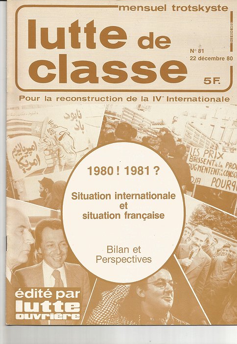 Nous publions dans ce numéro de Lutte de Classe plusieurs textes adoptés lors du récent congrès de Lutte Ouvrière. Ces textes présentent l'analyse faite aujourd'hui par Lutte Ouvrière de la situation internationale d'une part, intérieure de l'autre. Ils ont été écrits au début novembre 1980. Ils sont donc forcément …