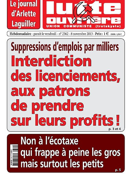 Non à l'écotaxe qui frappe à peine les gros mais surtout les petits ! Faire payer sur leurs profits les grandes entreprises du transport, de l'agroalimentaire et de la distribution (Communiqué de Lutte Ouvrière) :